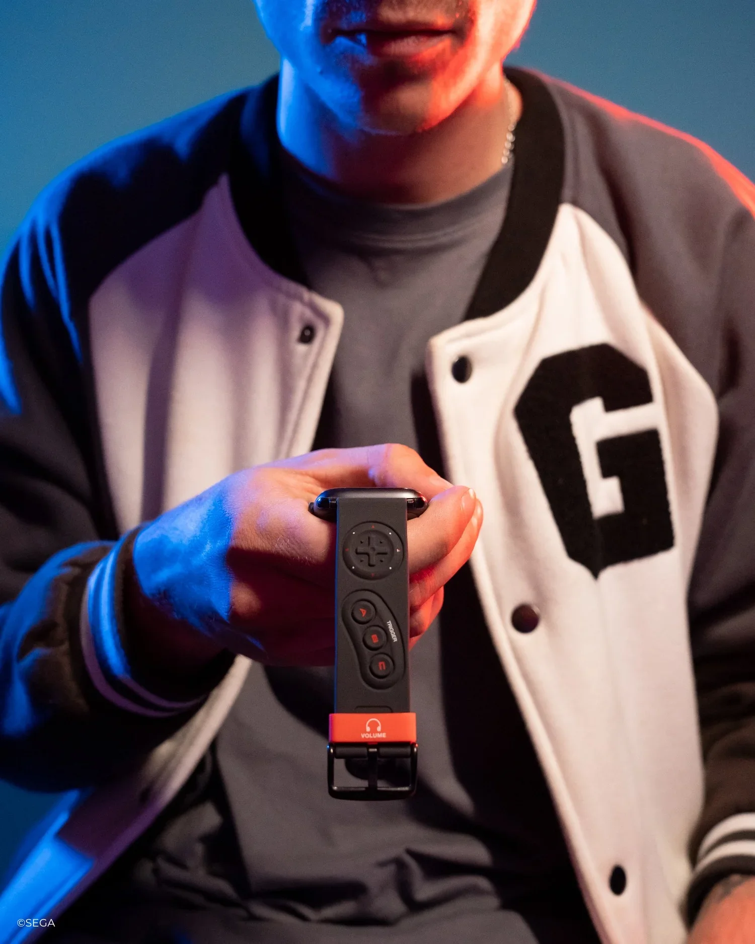 3D molded strap featuring elements of the classic console itself and the iconic six-button controller, including the “Start” and “ABC" buttons and the directional pad.